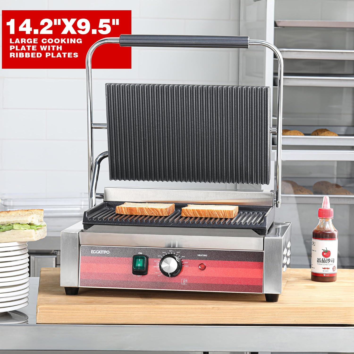 Ideal for preparing paninis,grilled sandwiches, burgers, steaks, chicken breasts, and vegetables. Its large surface area and consistent heat output aim to support efficient meal preparation.